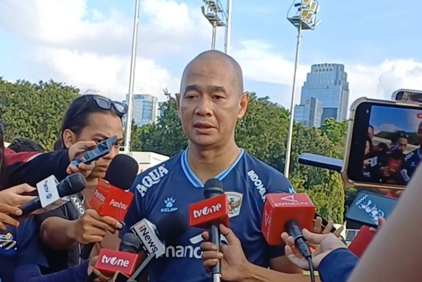 Kurniawan Dwi Yulianto memberikan keterangan kepada media. Foto: Kamustimnas.com